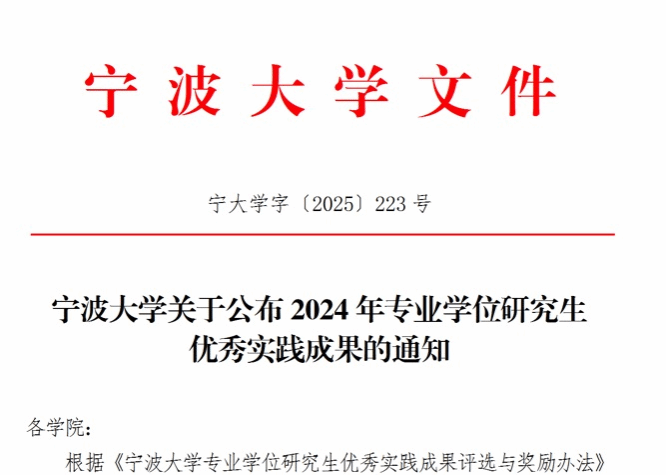 公布2024年专业学位研究生优秀实践成果评选结果(宁大学字〔2025〕223号),17吃瓜网