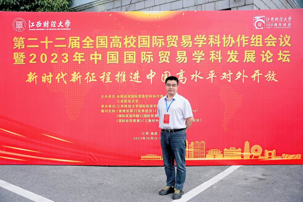 江西财经大学百年校庆前夕,由全国高校国际贸易学科协作组、江西财经大学主办,江西财经大学国际经贸学院承办的第二十二届全国高校国际贸易学科协作组会议暨2023年中国国际贸易学科发展论坛于2023年10月13-15日在南昌举行。来自商务部、江西省商务厅和全国100余所高校和研究机构、杂志社的300余名专家学者与会。我校MIB学位点教师叶劲松出席此次盛会。
