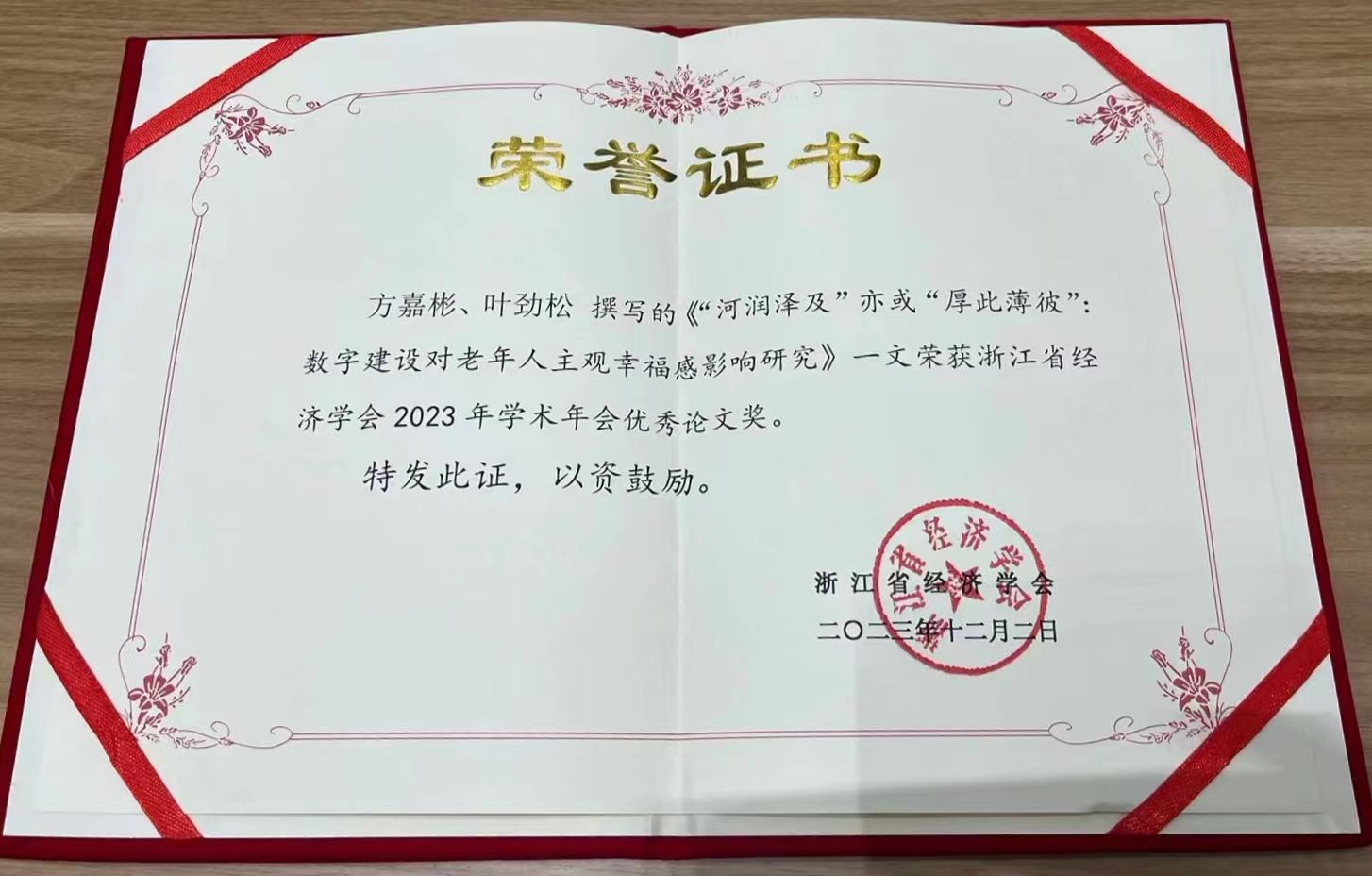 张梦婷老师论文获评浙江省经济学会2023年度优秀成果三等奖