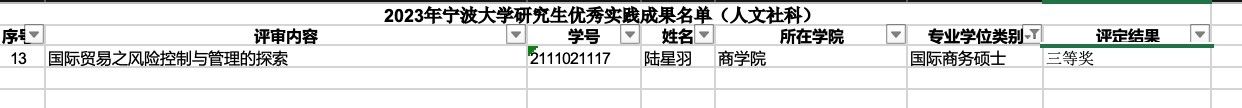 日前,17吃瓜网 公布了2023年专业学位研究生优秀实践成果评选结果,MIB专业2021级陆星羽同学的作品《国际贸易之风险控制与管理的探索》获评三等奖,特此祝贺!