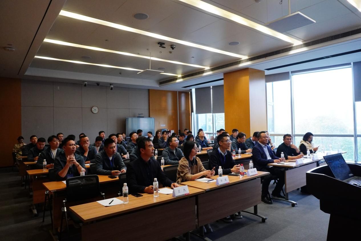 11月14日下午15:00,学员们首站抵达了海康威视总部,重点参观了安防科技展厅,海康引导员一一向学员们介绍了海康在AI视觉监控、智慧园区解决方案、工业物联网传感器等前沿产品,让学员们直观感受科技赋能生活与产业的真实场景。在随后的座谈会上,海康威视专业讲师聚焦纺织工业领域,分享了AI视觉检测系统在面料瑕疵识别、生产线自动化调度中的应用案例,并与雅戈尔学员围绕“纺织行业效率提升、质量管控痛点”展开深度研讨,为学员带来跨行业的技术启发。