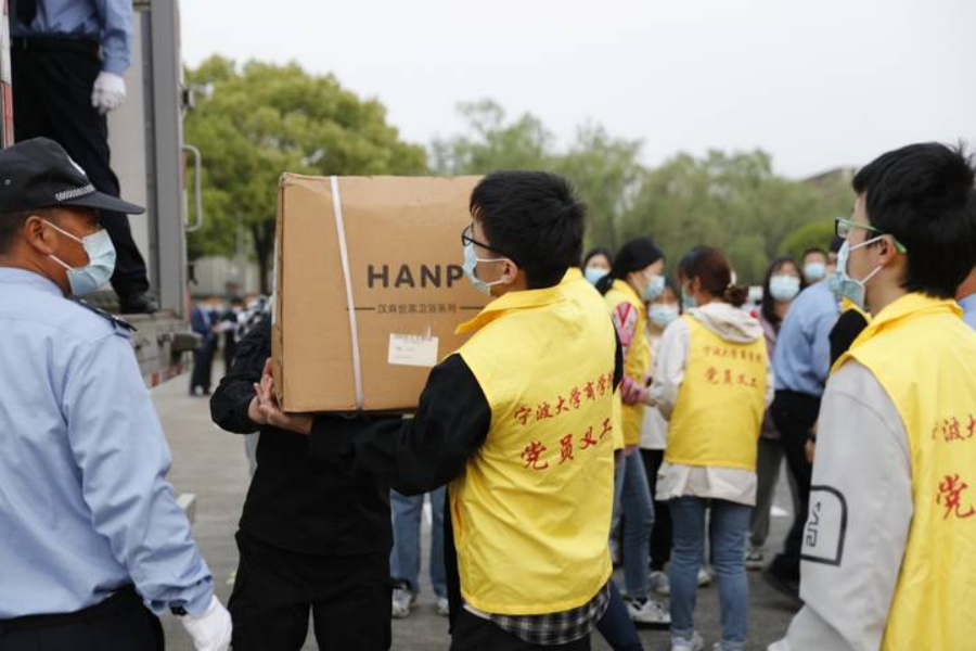 心连心,共抗疫情!”横幅的大货车缓缓驶入校园,在宁大包玉书广场、安中大楼前卸下了来自雅戈尔集团的首批捐赠物资。雅戈尔近期还将陆续送抵宁大捐赠物资,总计包括14.89万件健康用品、总价值5千多万元,满载着雅戈尔集团的企业大爱,为宁大校园注入了一股春日的暖流。