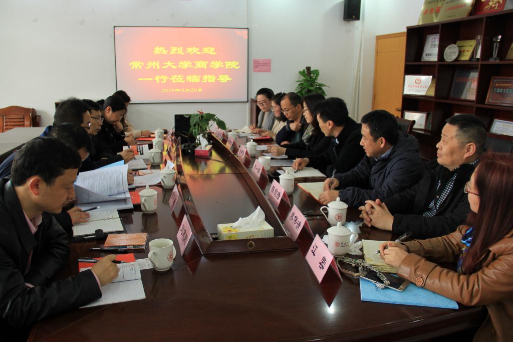 朱一鸿对常州大学商学院姜国刚副院长一行表示欢迎,并对学院的概况,尤其是我院本科专业设置、师资情况、学生情况等进行简要介绍。