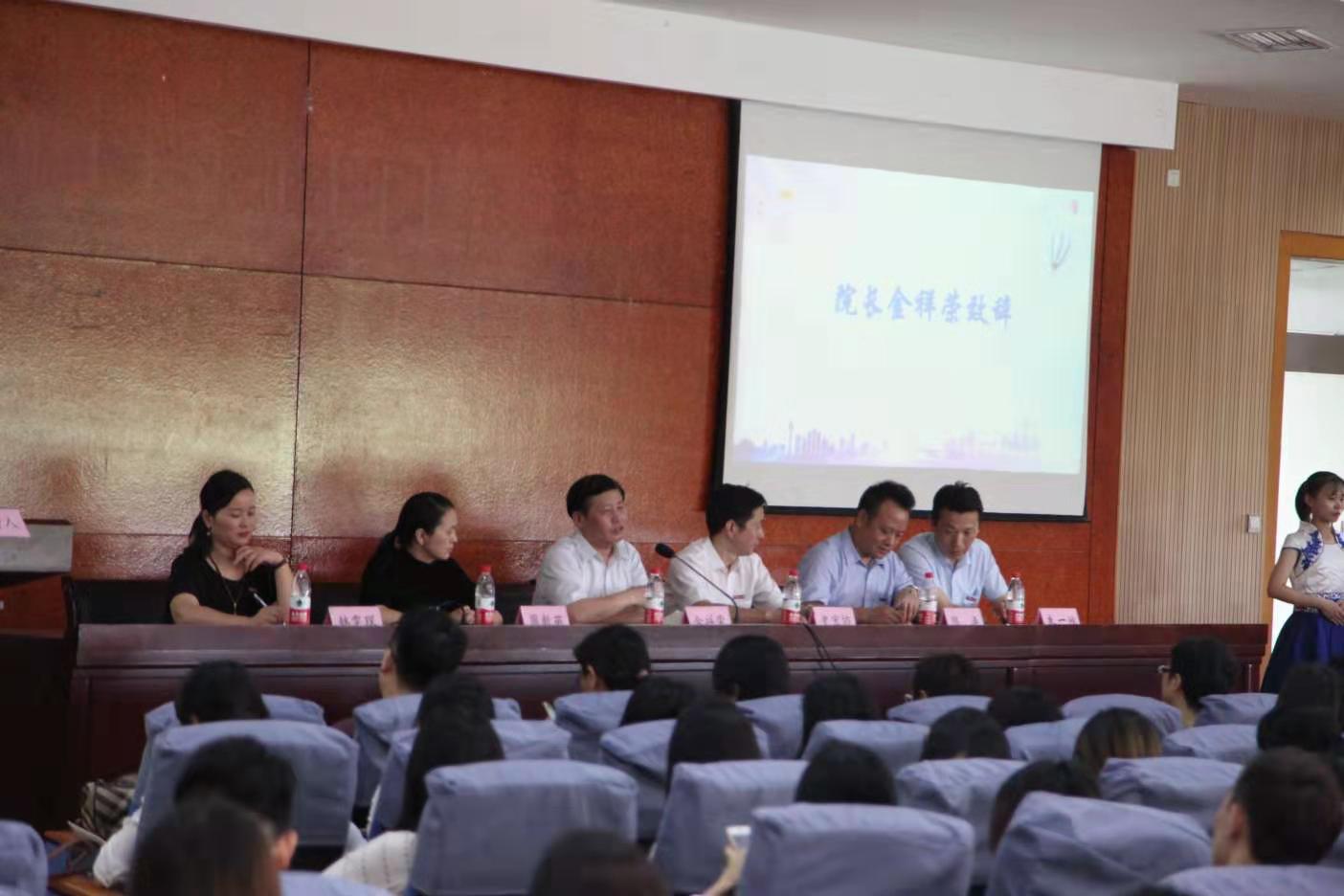 在讲话结束后,院长、书记为专业硕士兼职导师颁发证书并佩戴校徽,表示欢迎。随后,导师代表张聪群讲话,他从“做人”“做事”与“做学问”三个维度给新生们一点希望和建议,愿商院学子做人学会诚实守信、勇于担当、积极乐观,做事不应该停留于做过与做完,应追求做好做精。同时在做学问上张老师也对座非全日制硕士研究生提了三点建议,一是重视研究选题与研究方法,二是善于训练批判性思维,三是维护学术尊严。最后,新老生代表也上台发言表决心。会议在校歌声中圆满结束。