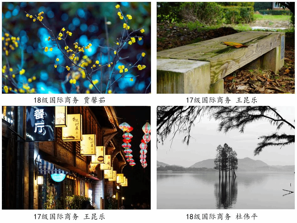 本次活动共收到18幅摄影作品,所有选送作品均由我院同学拍摄,经班级内部评选后推送至本次摄影展。作品内容丰富、风格多样,构图精美、手法各异,从各个不同的侧面、不同的角度,全方位展现了我院学生在生活中发现的美好点滴。与会的研会成员从作品的主题内涵、创意构思、视觉效果等方面进行后进行投票评选,最终由17级国际商务王昆乐,18级国际商务贾馨茹及杜伟平拍摄的4幅作品脱颖而出,被评出为院优秀作品,将刊载于本期《商研思博》期刊中。