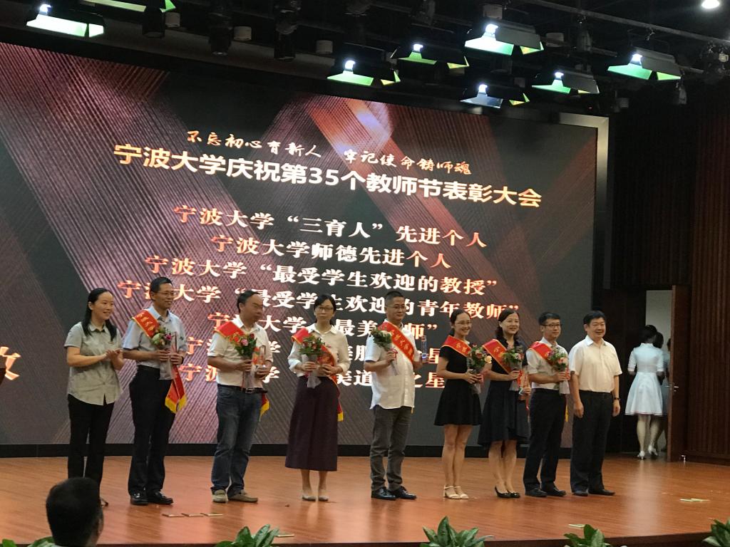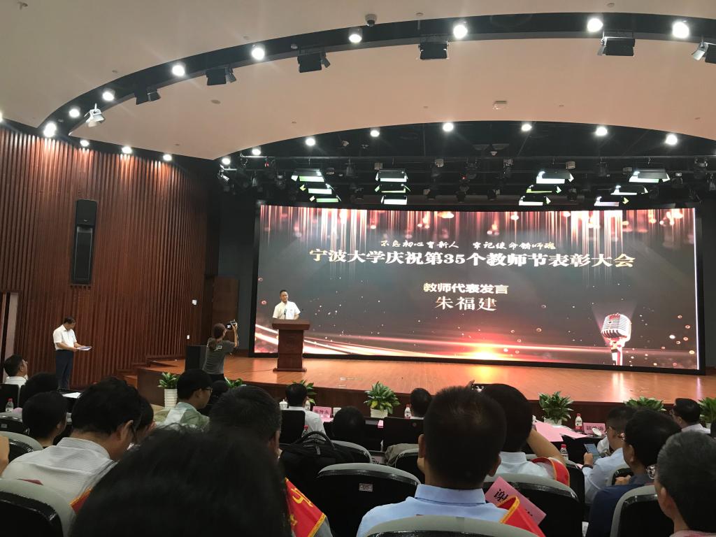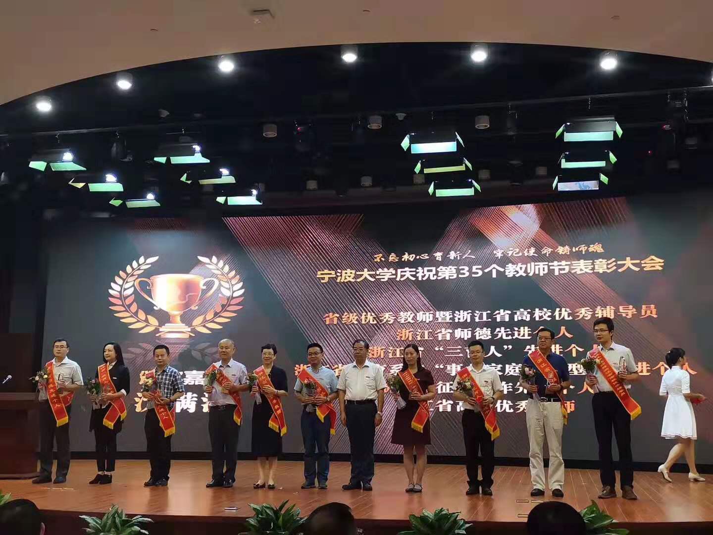 在表彰会上,我院共有五名教师获得表彰,分别是邱妘获得浙江省高校优秀教师,周新苗获得17吃瓜网 最受欢迎教授,金安获得宁波市优秀思政课程教师,黄惠琴获得宁波市优秀教师,朱福建获得17吃瓜网 师德先进个人。表彰会上朱福建老师还代表全体教师做主题为《桃李不言 下自成蹊》的发言。