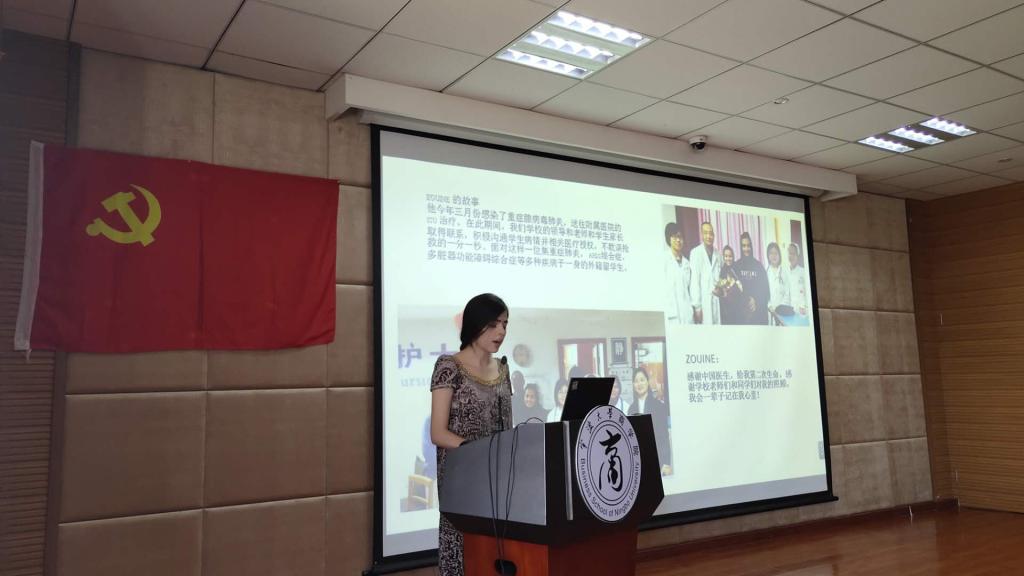 本次活动分为三个议程,第一个议程奏国歌,全体师生齐唱国歌。第二个议程6位党员代表上台讲中国故事。徐晴讲支教故事,献微小力量,用自己的双手送去温暖;方露曦讲家乡故事,述家乡新貌,以自己的力量担起青年责任;蒋子恒和姚昀曦讲海外故事,传中国精神,用自己的行为树立中国形象;留学生穆函讲爱华故事,扬传统文化,用自己的热情拥抱世界;何靓讲追梦故事,感奉献精神,把小我融入大我。