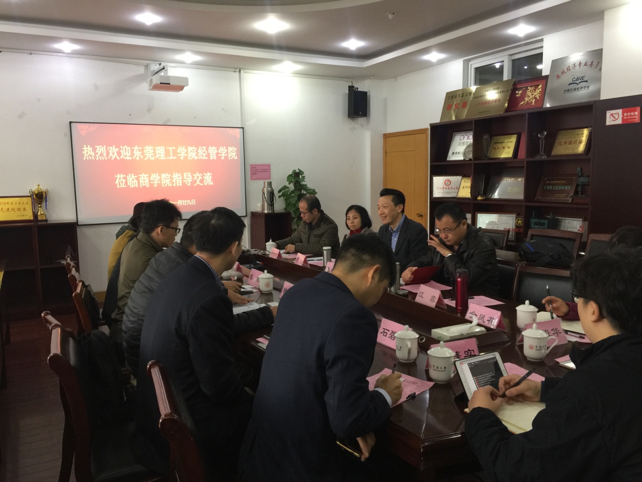 11月29日上午,东莞理工学院经管学院副院长黎伟一行9人来我院考察交流。我院协理副院长朱一鸿、国际经济与贸易系教学系主任丛海彬、金融系教学系主任贺翔、经济系闭明雄老师等出席交流会。