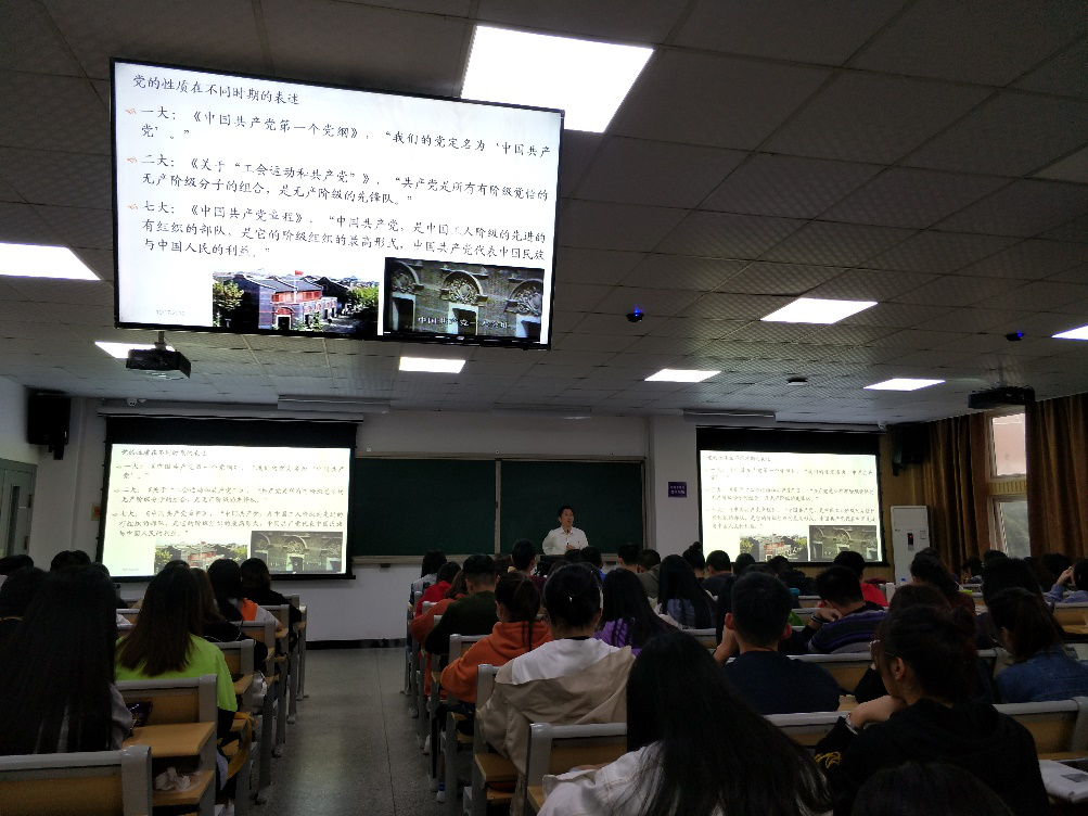 党课中,史书记分别从三个方面介绍了党的性质和指导思想,他结合经典案例,运用详细数据,介绍了十九大党章对党的行动指南的描述、中国特色社会主义发展历史的新方位以及习近平新时代中国特色社会主义思想,使全体学员对党的性质和指导思想的内容与内涵以及十九大精神丰富内核有了更加深刻的认识。课上,史书记勉励学员们不忘初心,牢记使命,争做新时代中国特色社会主义建设者。通过此次党课,同学们也纷纷表示加深了对党的认识,激发了自身爱国爱党的情怀,坚定了同学们积极向党组织靠拢的决心。