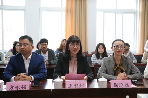 我院90级校友宁波赛尔集团副总裁王彩虹、赛尔集团副总裁方永强,赛尔集团总监周玲燕,我院党委书记史宏协、协理副院长朱一鸿、学院国际商务学位点负责人杨丽华教授等出席仪式,会议由学院党委副书记韩雯琛主持。
