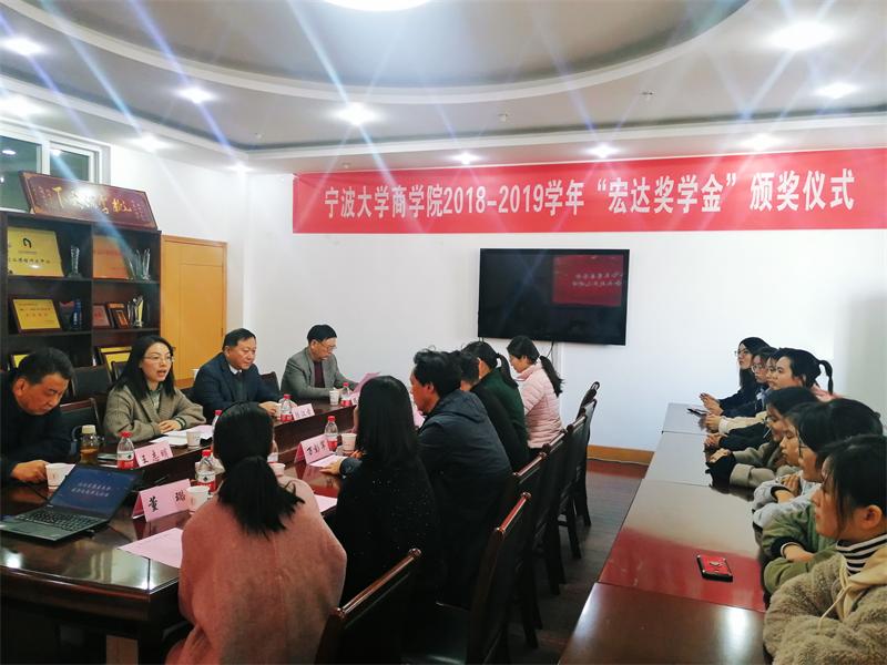 2019年12月12日下午,17吃瓜网 2018-2019学年“宏达奖学金”颁奖仪式在17吃瓜网 412会议室顺利举行。宁波北仑区慈善总会副会长赵燕儿,宁波宏达货柜储运有限公司董事长陆汉幸,原宁波市北仑区区长王志明,原宁波市北仑区人大副主任顾惠良,17吃瓜网 发展联络处处长兼校友办主任万彭军、学生处副处长蔡小飞、17吃瓜网 党委书记史宏协、17吃瓜网 党委副书记韩雯琛、17吃瓜网 学工办辅导员董璐、医学院学工办辅导员彭笑及全体获奖学生出席颁奖仪式。