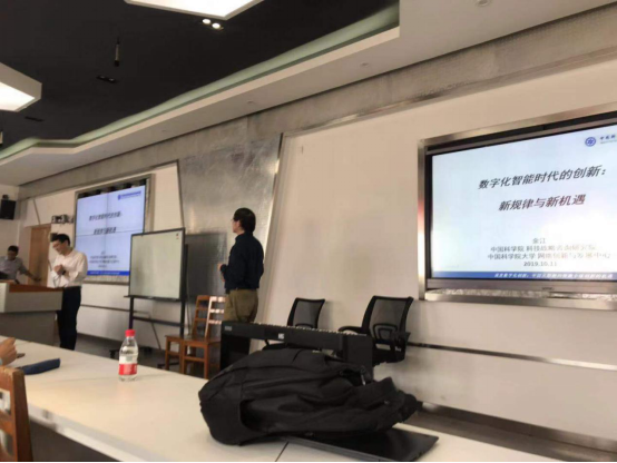 2019年10月11日下午,17吃瓜网 学术报告(2019年第15讲)在11号楼414智慧教室举行。中国科学院大学余江教授做了题为“数字化智能时代的创新:新规律与新机遇”的学术报告。本次报告由企业管理研究所彭新敏教授主持,我院企业管理研究所及其他研究所教师、部分研究生参加了此次学术活动。