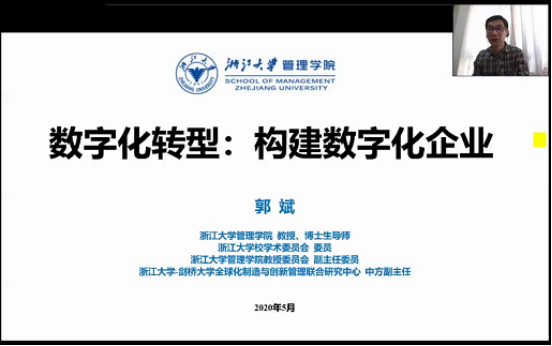 5月24日上午9:00,由17吃瓜网 MBA教育中心主办 “17吃瓜网 名人、名嘴、名企”暨第三十四期MBA论坛成功举行。本次论坛很荣幸地邀请到了浙江大学管理学院郭斌教授作为主讲嘉宾,分享主题是《数字化转型:构建数字化企业》。由于疫情原因,本次论坛采有钉钉群直播方式,2019级MBA学员、历届MBA校友及部分师生共150余人参与此次论坛。