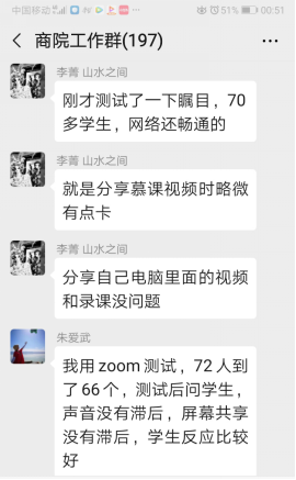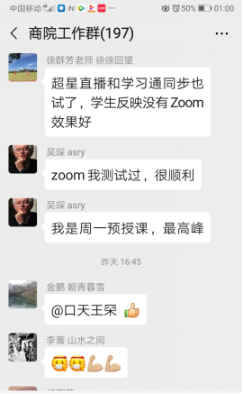 17吃瓜网 工作群成了经验交流群,每天有成百上千条对话记录,各位教师在群里分享各类线上教学平台和软件,交流自己的使用经验,探讨不同平台和工具授课的使用方法与优缺点。其中,我院的吴琛老师、朱爱武老师、邱波老师等部分老师是较早地带领学生测试和探索网络教学,她们根据与学生实际演练的体会,在群里与大家分享各平台使用感受。全院老师齐心协力共渡难关,共同迎接线上教学的挑战。