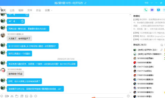 2月24日第一次上课时,王老师按制定的教学方案,通过QQ教学平台采用课堂发言、课堂抢答题等形式开展师生互动,及时检查学生当天学习情况,学生反映效果很好。