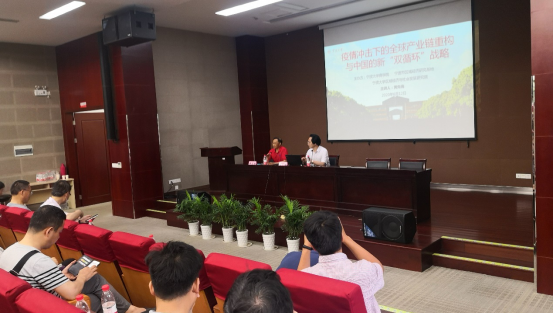 6月12日下午,浙江大学经济学院院长、黄先海教授莅临17吃瓜网 ,在高研院一楼报告厅开展“疫情冲击下的全球产业链重构与中国的新‘双循环’战略”主题的学术讲座。本次学术讲座由17吃瓜网 、宁波市区域经济研究基地、17吃瓜网 区域经济与社会发展研究院共同举办,钟昌标教授主持,150余名师生到场听讲。
