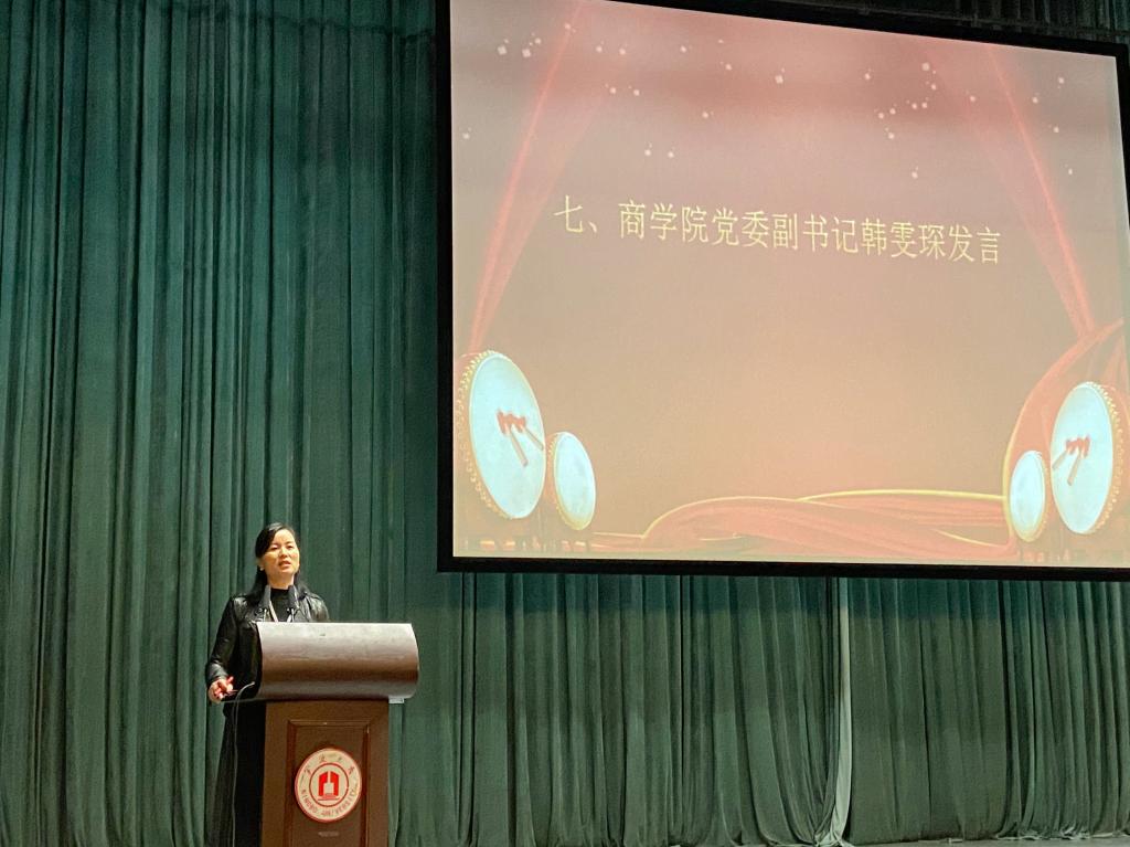 大会最后,韩雯琛进行了总结讲话,鼓励大家尽早规划自己的未来,明确目标。她对学院2020届毕业生就业情况作了分析,从毕业生就业率、就业区域、就业单位、就业行业等方面进行了剖析,并重点分析了近几年17吃瓜网 学生深造的情况,鼓励同学们志存高远,继续深造,以追求更大的人生价值。