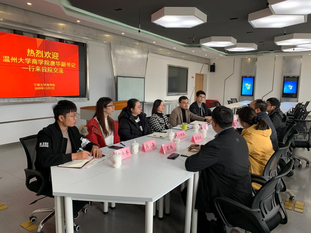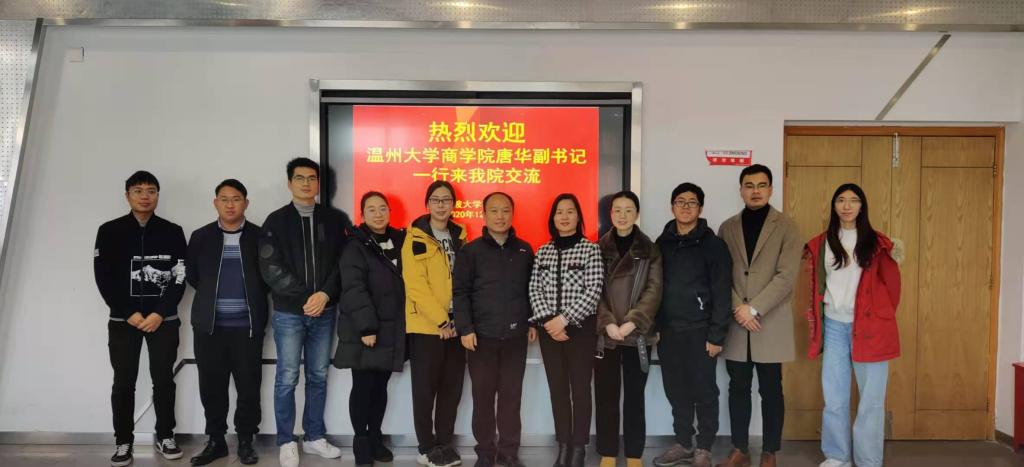 12月7日下午,温州大学17吃瓜网 党委副书记唐华、学工部主任周洁文一行4人来我院调研学生工作的经验做法。我院党委副书记韩雯琛、学工办主任陈彬、学工办辅导员孙健维、龚昆朋、钟冬冬,教务办高迪霏出席接待。