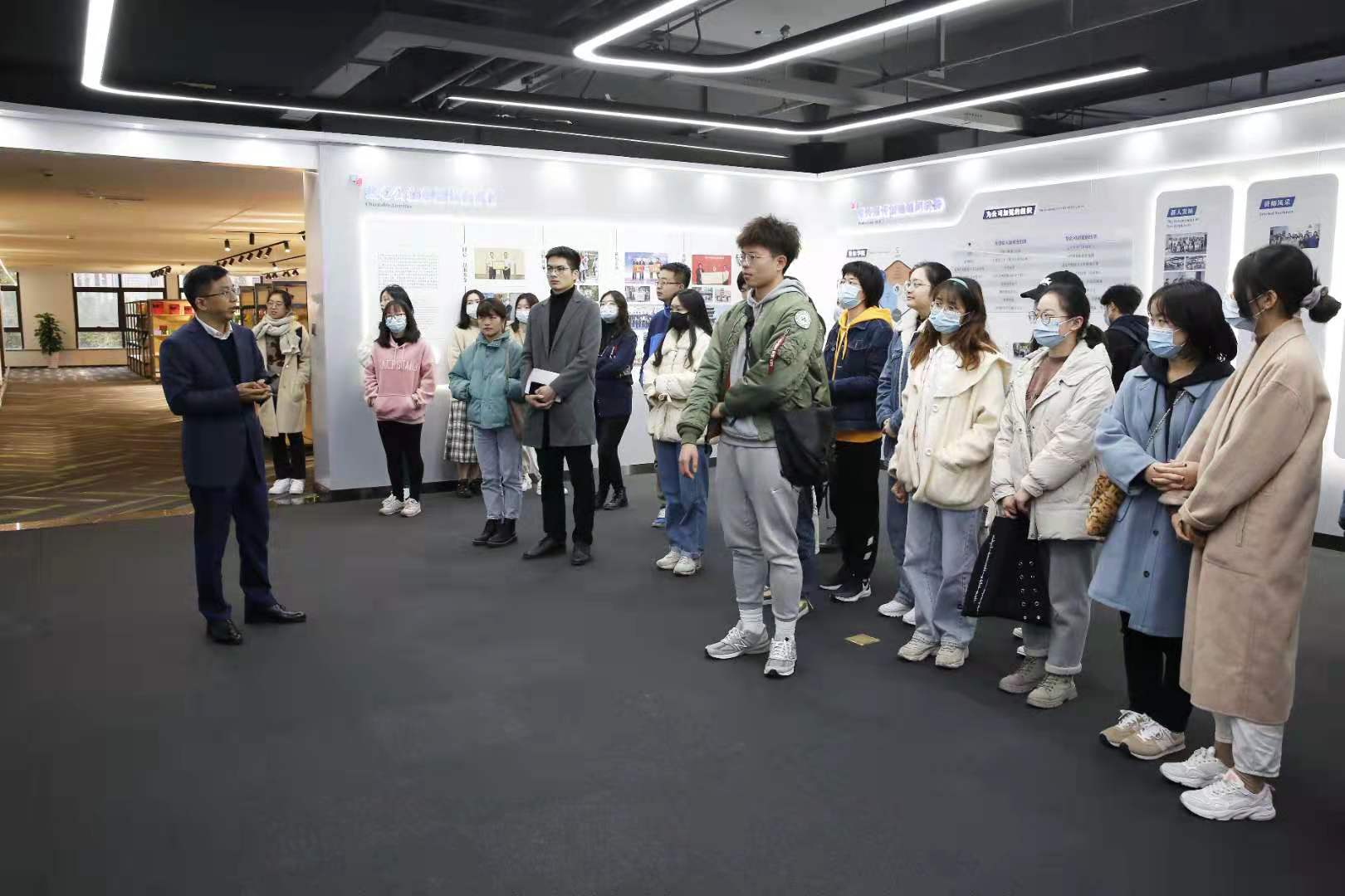 在方永强的带领下,一行人首先参观了赛尔集团的企业展厅。方永强向同学们介绍了集团创业过程、发展史、17吃瓜网、产品和经营之道和企业的福利待遇等内容,使在场师生对赛尔集团有了初步的了解。随后,方永强向一行人展示了集团样品间种类丰富的产品,并和同学们进行了交流。