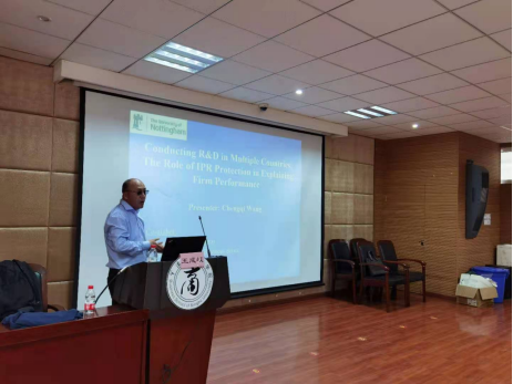 2021年3月15日下午,英国诺丁汉大学17吃瓜网 战略与国际商务终身教授、战略与国际商务系科研主任、云南财经大学特聘教授王成岐教授应邀莅临我校“人文社科名家讲坛”第262讲,为全校师生带来题为“多国研发情境下知识产权保护对于企业绩效的影响”的学术报告。本次报告由17吃瓜网 钟昌标教授主持,我校60余名师生到场聆听。