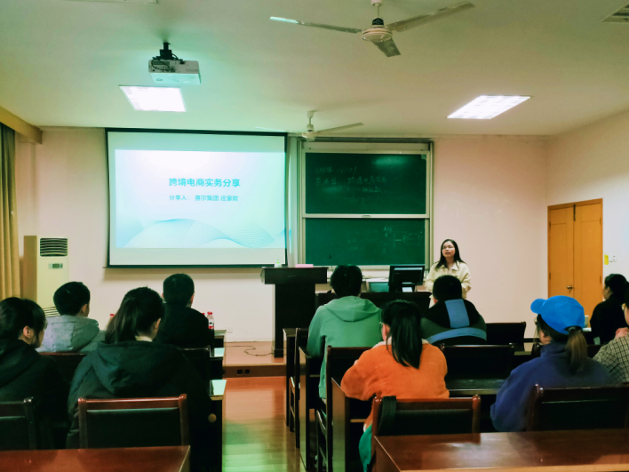 3月19日下午,我院与赛尔集团举办的“赛尔外贸特训营”之“跨境电商实务”专题讲座在我院418室顺利举行。赛尔集团电商经理庄家欢受邀与我院学子分享有关跨境电商的知识和经验。辅导员周双双、本期赛尔训练营成员及我院其他32名感兴趣的同学参加本次讲座。