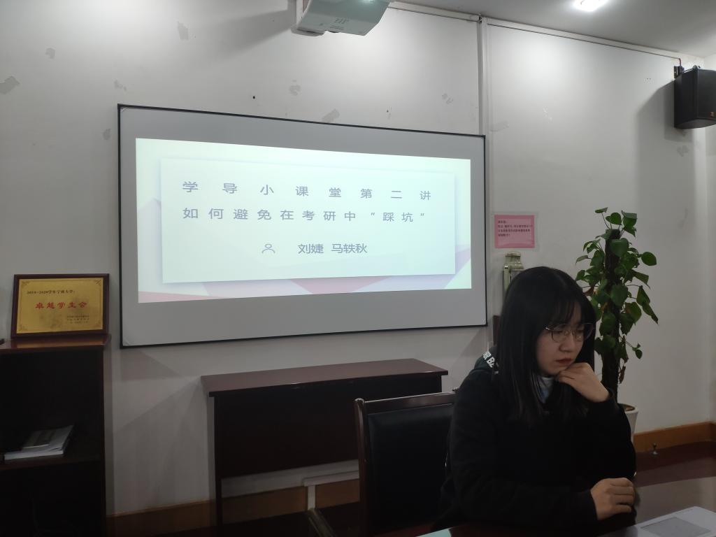 11号楼412举办“宁波帮‘甬‘在未来党建领航育人工程“之学导小课堂第二讲——如何避免在考研中“踩坑”。本次学导小课堂由研究生第二联合党支部成员刘婕、马轶秋进行分享,我院有考研意向的本科生参加。