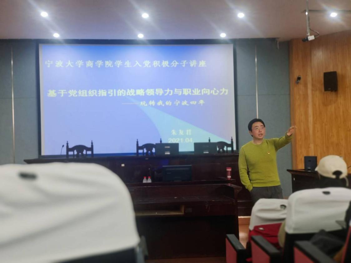 2021年4月17日上午,我院党委分党校第44期积极分子培训班第二讲在第五阶梯教室顺利举行,主讲题目为《基于党组织指引的企业领导力与职业向心力》,120余名党校积极分子学员参加。宁波市滨海研究院副院长朱友君老师担任主讲人。