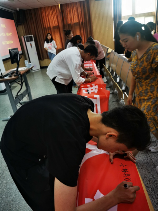 活动中,董璐首先进行了资助政策以及助学贷款的知识宣讲,强调了诚信的意义以及重要性。随后,董璐就大学生失信案例与同学们进行了分享交流,内容涵盖学习诚信、生活诚信、网络诚信以及就业诚信。最后,同学们进行了“以青春之名 书写诚信人生”倡议签名,在发出“诚信做人”倡议的同时,也郑重许下对于诚信的承诺。
