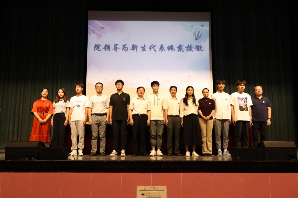 我院领导为新生代表佩戴校徽。