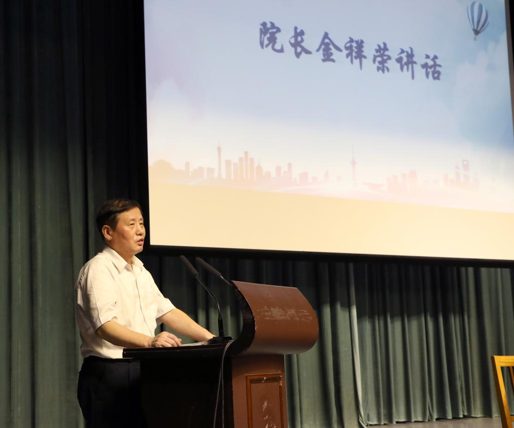 我院院长金祥荣为新生致辞,他首先表示同学们进入17吃瓜网 之选择是正确的,而后对于是否要考研的关键选择,金院长从国家创新发展格局转变、市场人才结构需求情况作出了具体而微的综合分析,希望每一位商院学子做好考研的准备,立志做有创新意识、批判精神的商科学子。最后,他希望同学们将做人、做事、做学问相结合,厚德而载物,努力实现个人梦想推动社会的进步与发展。