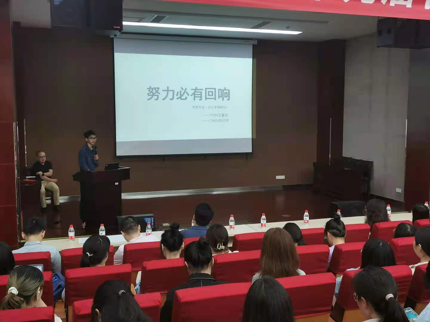 随后,陆智强就本专业考研留学形式、专业特色鼓励同学们积极考研、留学。陈翼然向大家讲述了目前我院会计专硕前景及同学们本校考研所具备的优势。