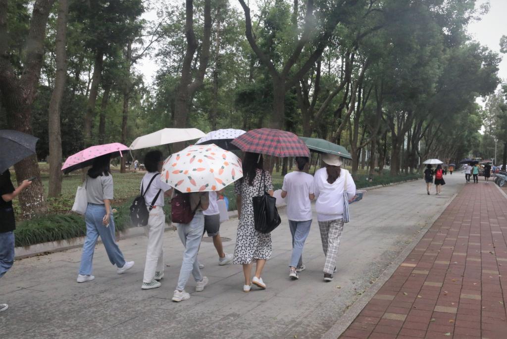 在淅沥的小雨中,21级研究生新生一行人于北门大踏步出发,沿着“天使之路”一路行至包玉刚图书馆。文“话”商帮宣讲团的同学们介绍了包玉刚先生捐建教学楼和图书馆的感人事迹,面对已被改造成美术馆的图书馆,新生们兴趣盎然,迫切希望拥有参观的机会。