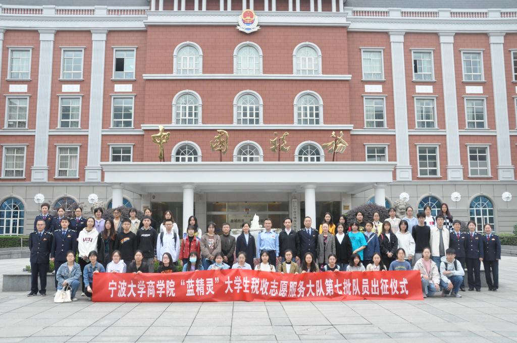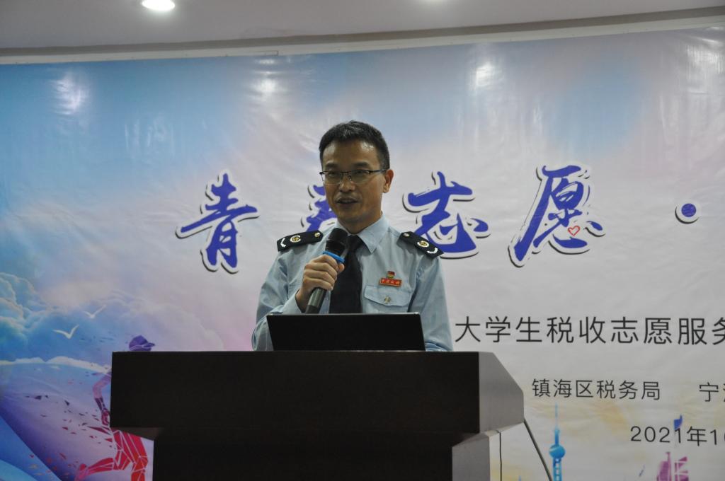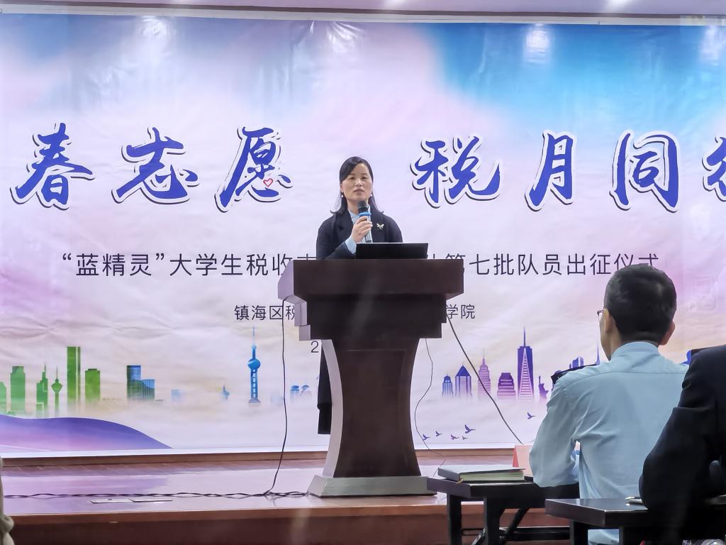 11月3日,我院“蓝精灵”大学生税收志愿服务大队第七批队员出征仪式在国家税务总局宁波市镇海区税务局举行。宁波市税务局纳税服务处副处长董如峰、镇海区税务局副局长屠晓军、镇海区税务局纳税服务科科长方锐和17吃瓜网 党委副书记韩雯琛、本科生第六党支部书记董璐受邀出席,镇海区税务局纳税服务科及各税务所业务骨干和“蓝精灵”大学生税收志愿服务大队第七批队员代表50余名同学参与此次活动。