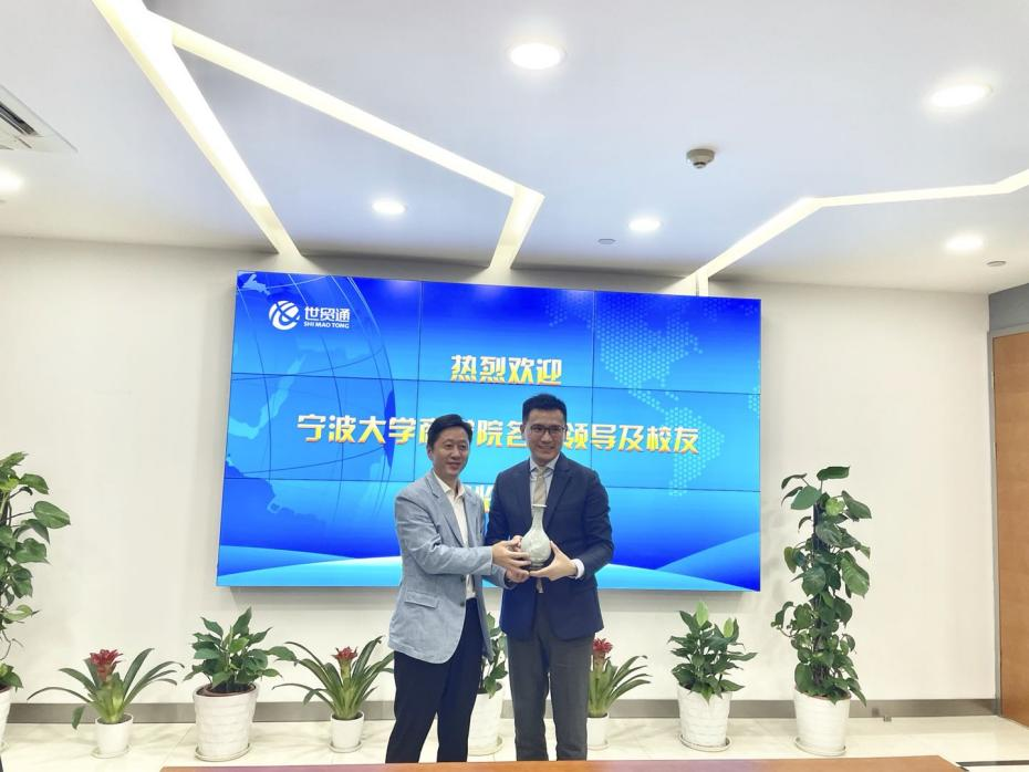 10月21日,我院院长金祥荣、党委书记史宏协、党委副书记韩雯琛、协理副院长朱一鸿、学工办主任陈彬及我院多名优秀校友走访校友企业宁波世贸通国际贸易有限公司,受到该公司总经理、我院00级国际贸易专业校友方敏的热情接待。