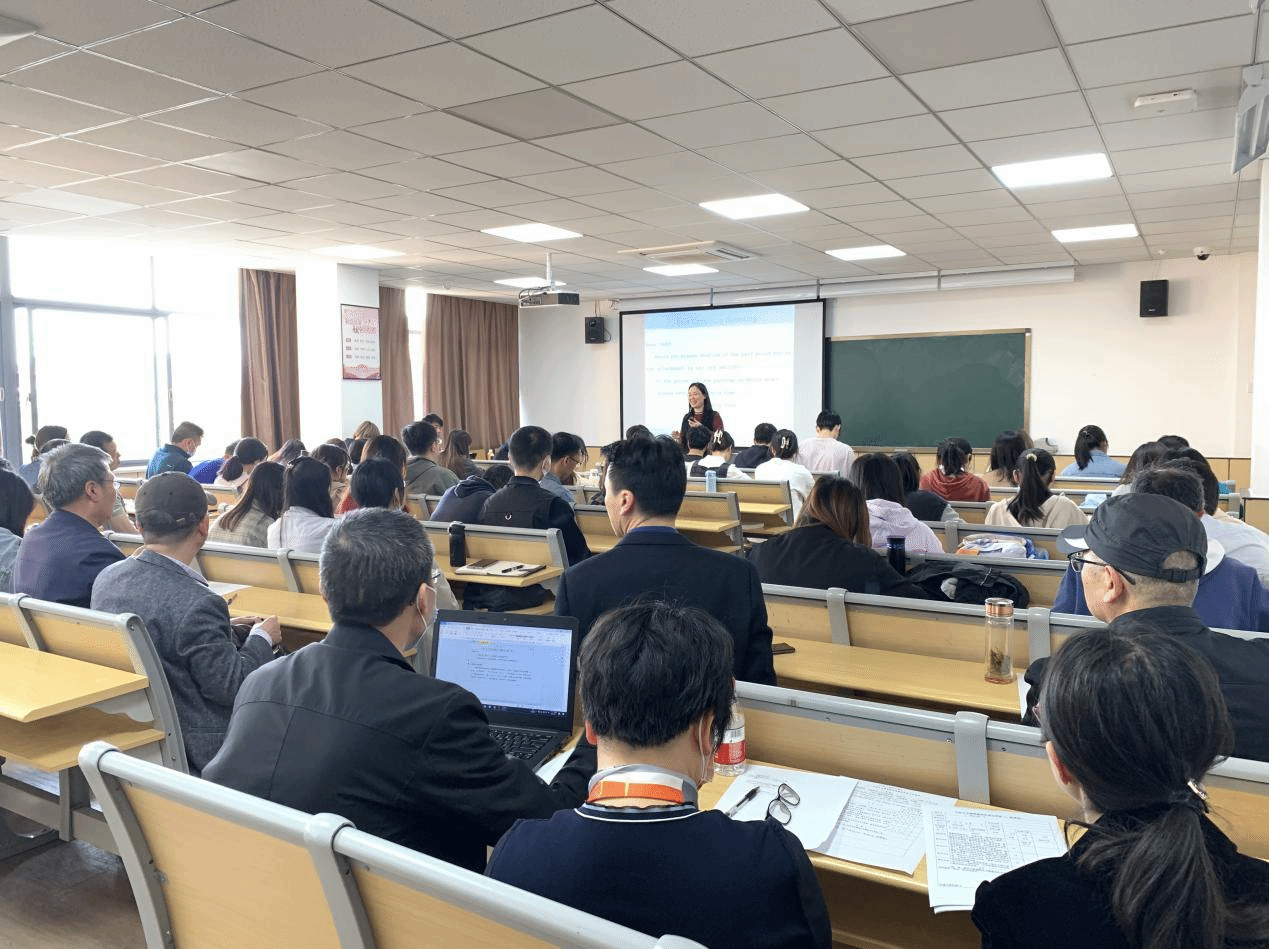 课后,协理副院长朱一鸿老师主持了课堂经验交流研讨。汪老师分享了《国际商务函电》课程的主要特点与教学设计。