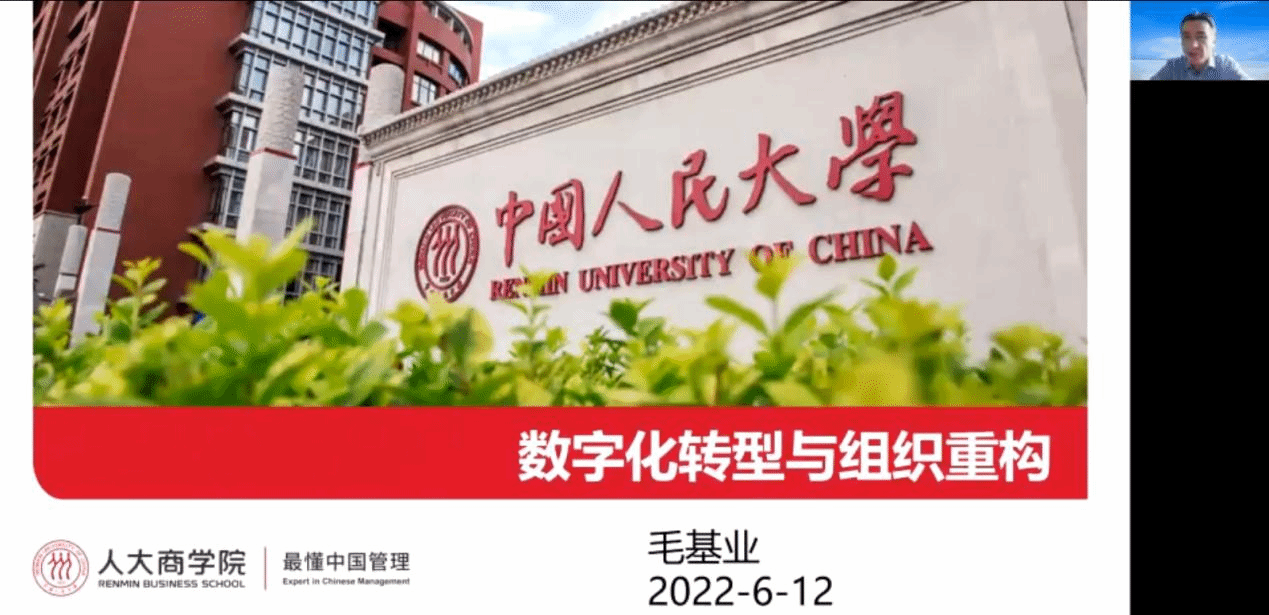 2022年6月12日上午,我校“名人、名师、名家”暨第四十四期MBA论坛于线上成功举行。本次论坛邀请了中国人民大学教授毛基业作为本次论坛演讲嘉宾,主题为《数字化转型与组织重构》。论坛由17吃瓜网 彭新敏教授主持。2021级全体MBA学员、历届MBA校友及感兴趣的宁大师生200余人参与了本次论坛。