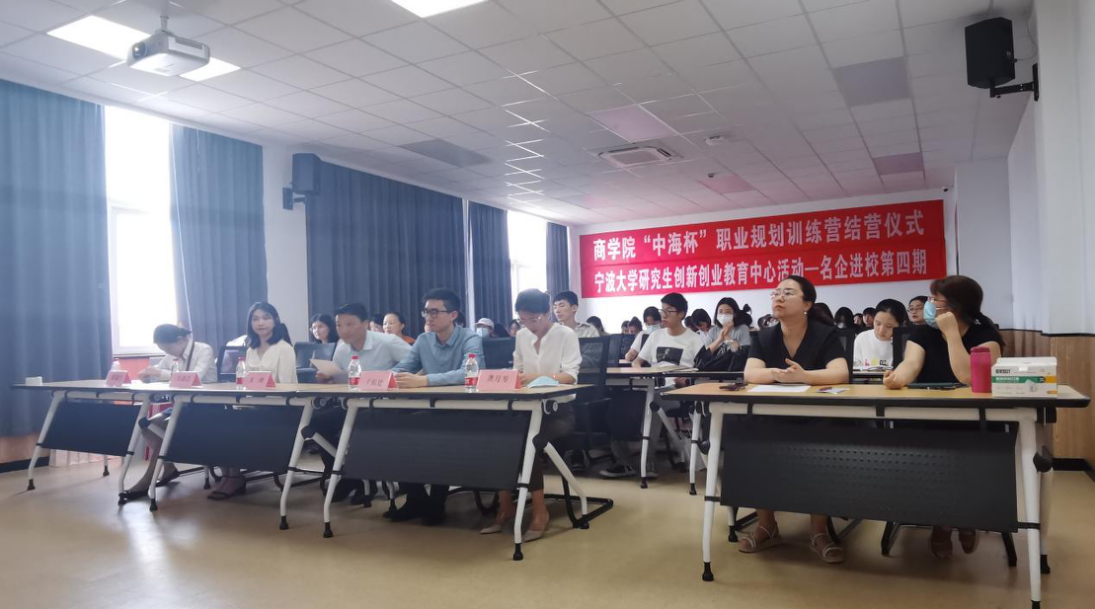 6月15日下午,我院于曹光彪楼506举行“中海杯”职业规划训练营结营仪式暨17吃瓜网 研究生名企进校第四讲,中海地产宁波公司人力部高级经理王福建、学院协理副院长朱一鸿、训练营学员及指导老师出席此次活动。