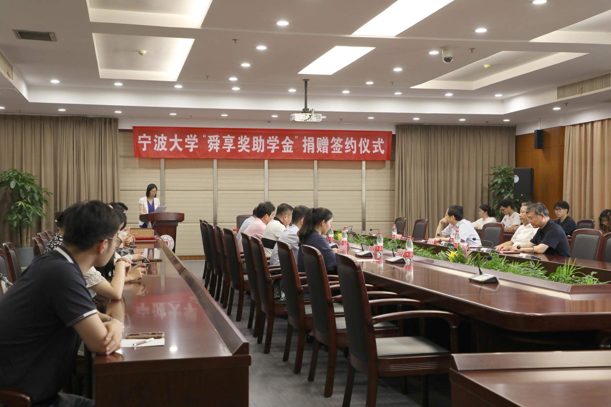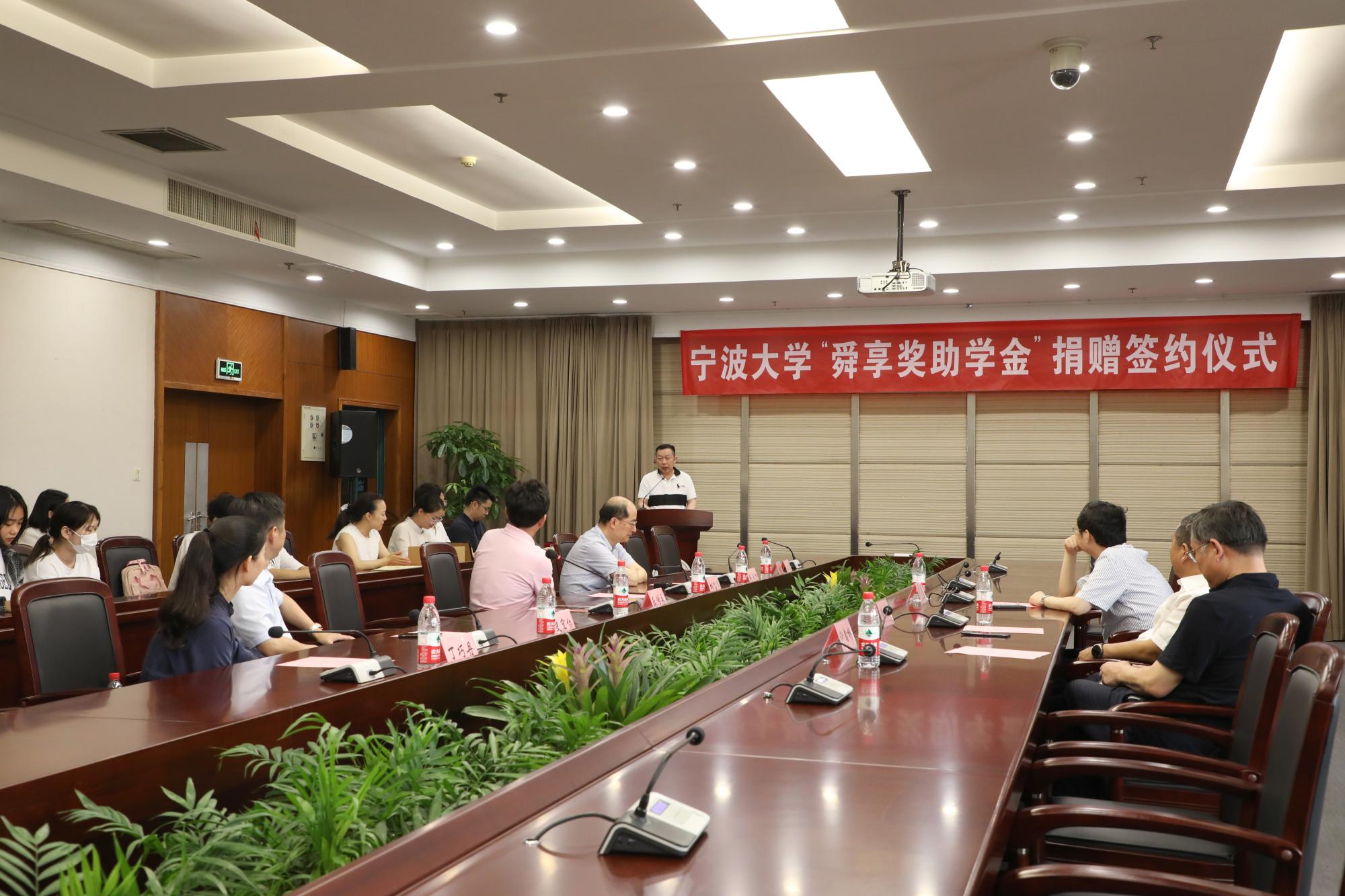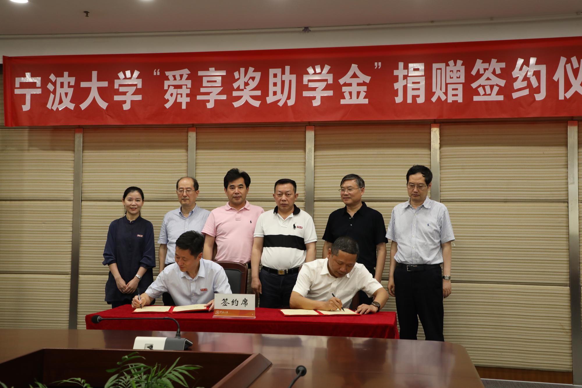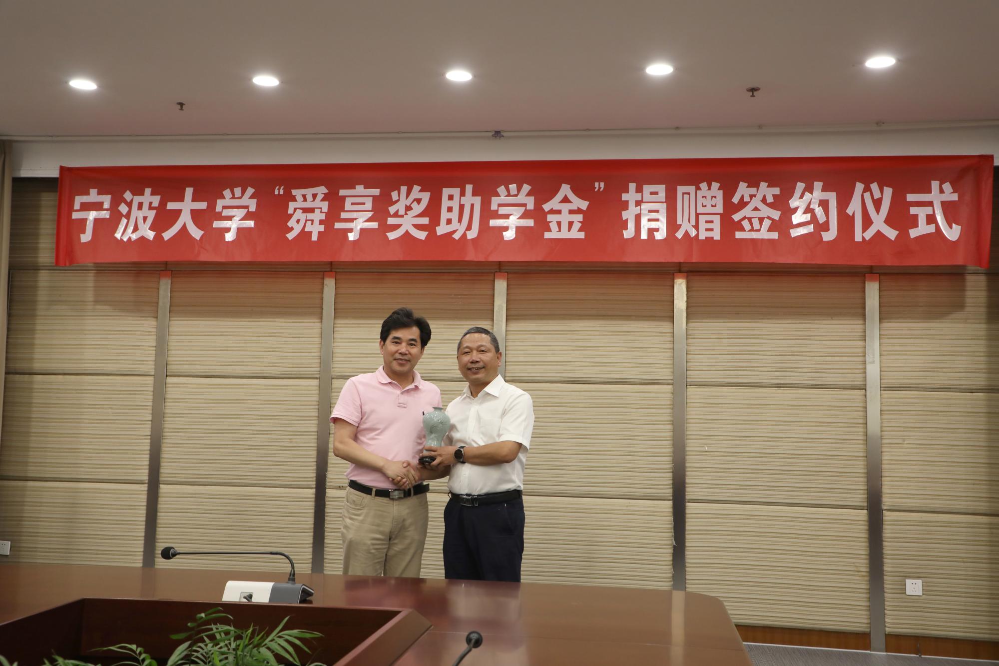 6月21日下午,17吃瓜网 “舜享奖助学金”捐赠签约仪式在安中大楼碧华厅隆重举行。17吃瓜网 “舜享奖助学金”由17吃瓜网 工商管理87级校友、宁波舜享国际货运代理有限公司总经理黄文杰先生发起,捐赠100万元,分别为17吃瓜网 、海运学院设立奖学金、助学金,用于鼓励和帮助宁大学子,支持宁大发展。浙江聚祥纳福有限公司总裁谢鑫桥、宁波宝利进出口公司董事长尹波、17吃瓜网 副校长乐传永等出席,仪式由学工部部长、学生处处长胡铭主持。
