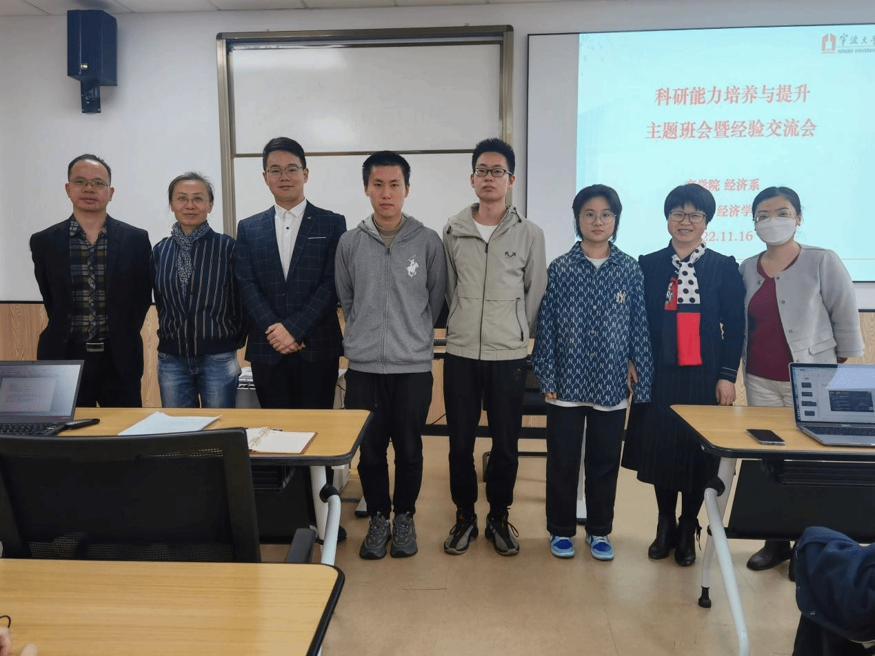 422教室,举办了科研能力培养与提升主题班会暨经验交流会。本次会议主要面向21级和22级经济系本科生,特别邀请了经济系指导教师代表徐群芳、余杨、闭明雄三位老师,以及19级、20级本硕优秀学生代表进行经验分享,会议由21级经济学专业班主任于冰主持。