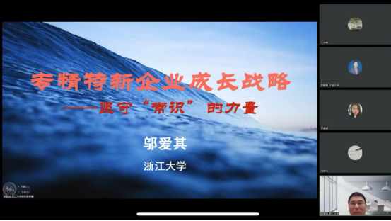 在本次论坛中,邬教授结合浙江省专精特新典型企业的成长案例分析,和我们深度分享了专精特新企业的成长动因,剖析了专精特新企业的五大绩效表现,重点解析了专精特新企业的八大成长路径,主要聚焦在坚定使命、聚焦主业、稳中求新、稳健经营、人才稳定、引领行业、深耕国内外市场等多方面做了详细阐述。