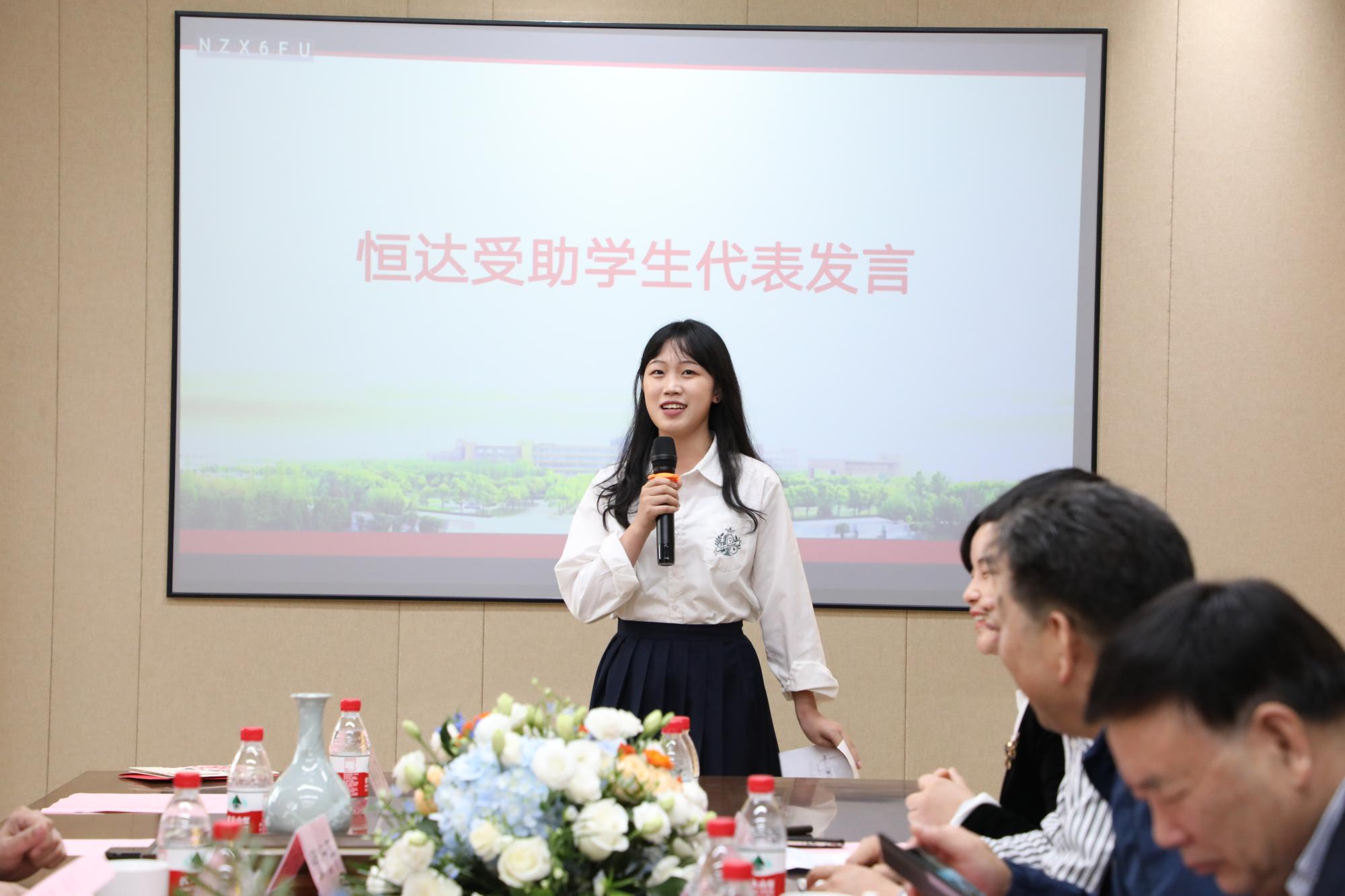 仪式上,恒达受助学生代表崔玉珍发言,她感恩贺总在生活方面照顾他们,让他们没有后顾之忧去追寻自己的梦想,并表示将不断完善自己,成为像贺行平先生一样的人,帮助更多孩子实现梦想,为国家贡献自己的力量。