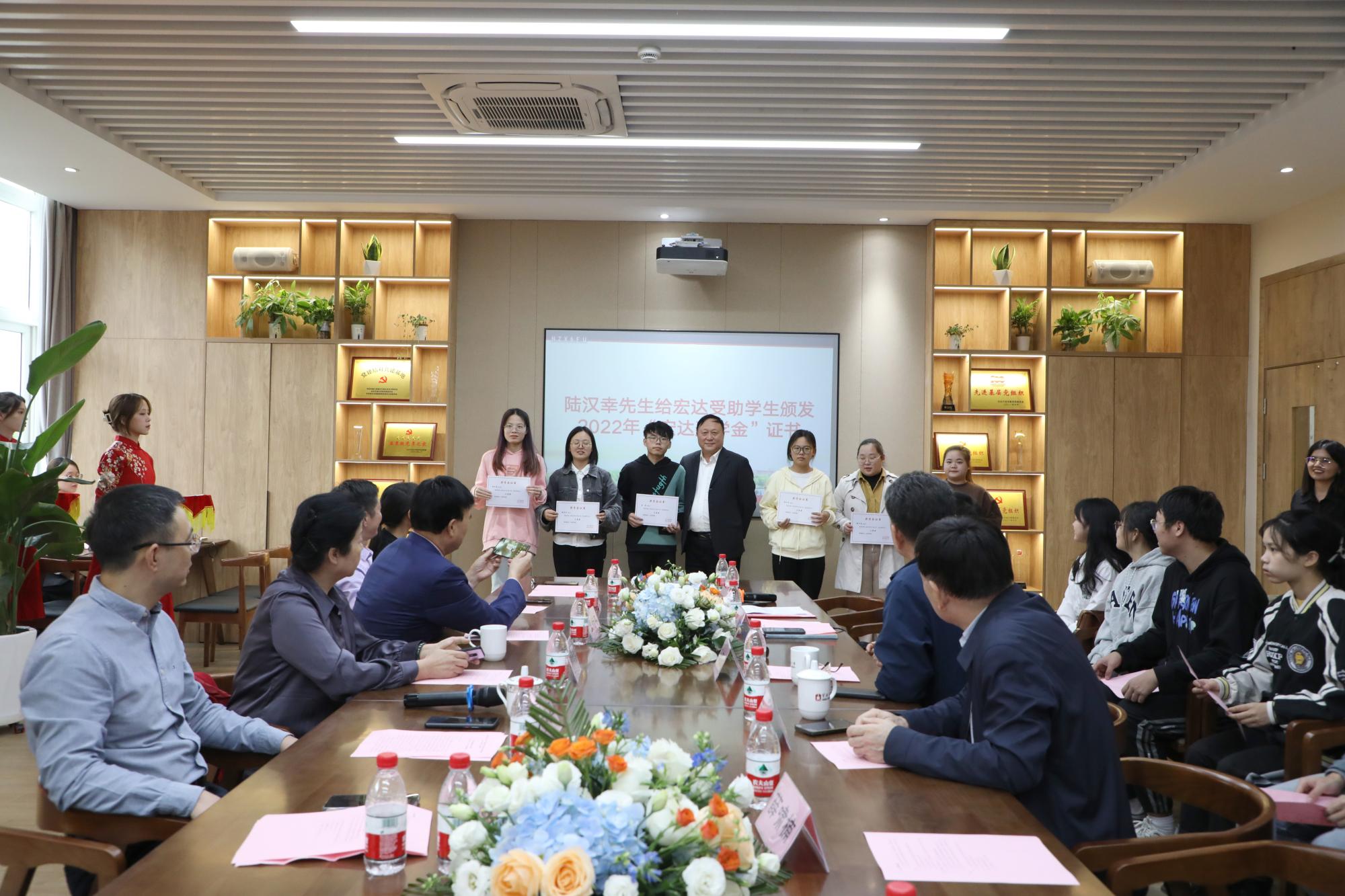 会议开始,由校友会副会长胡宝华宣读2022年“宏达奖学金”获奖名单,陆汉幸先生为在场获奖学生颁发2022年“宏达奖学金”证书。