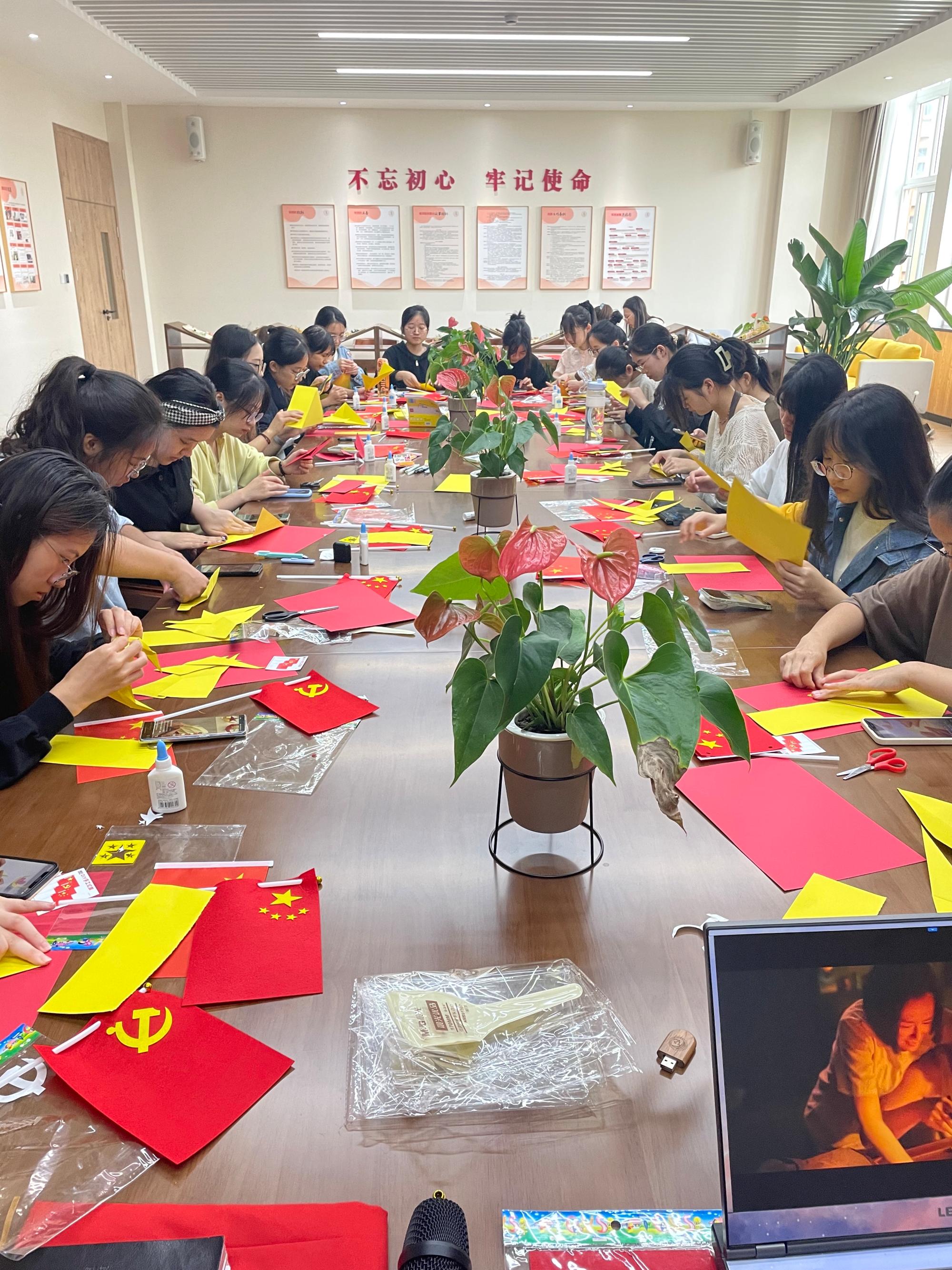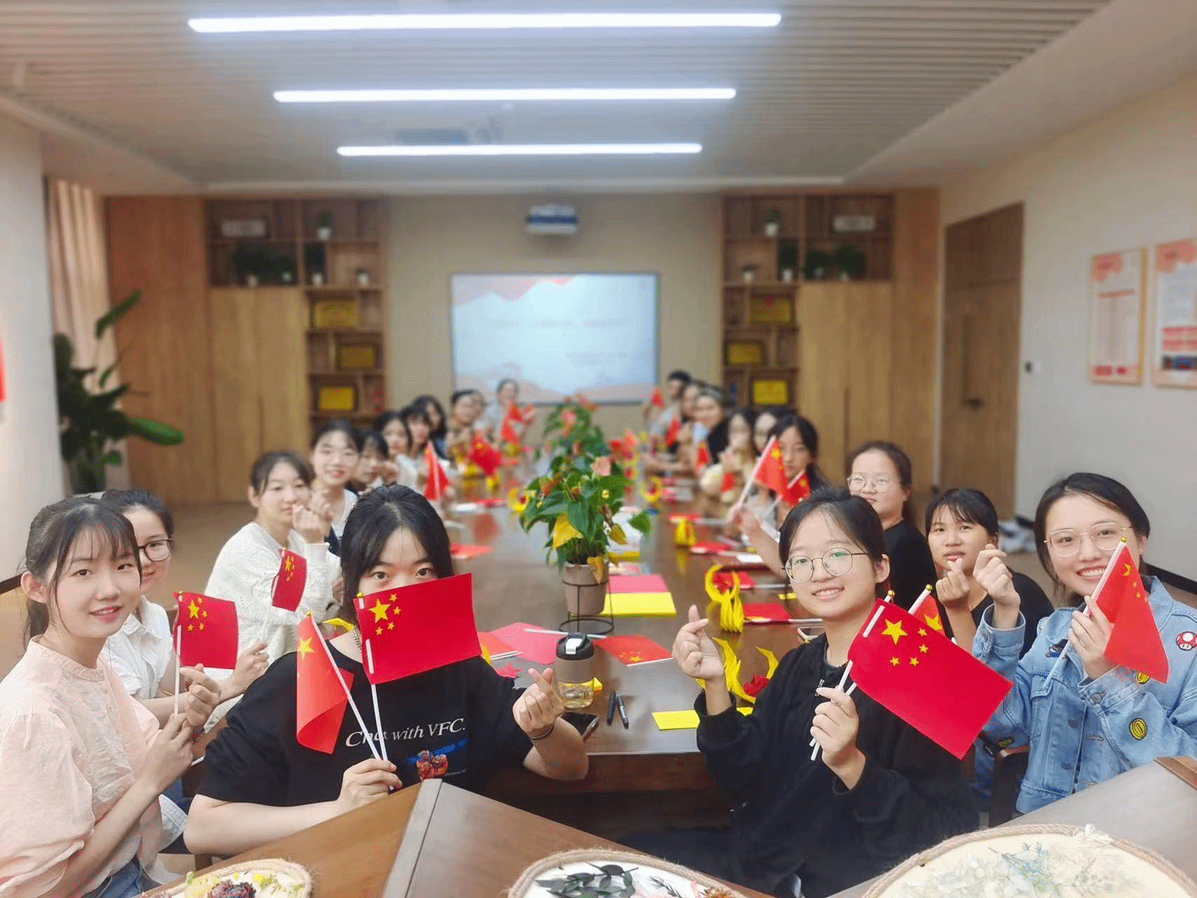 一抹中国红唤醒一份爱国情,一张照片定格一个瞬间,同学们通过观看爱国电影,重温建国历史;合唱《歌唱祖国》《我和我的祖国》等歌曲,表白祖国,共同祝愿祖国繁荣昌盛;用镜头留下与国旗的同框瞬间,表达浓浓爱国情。此外,同学们还用手工折纸的方式,发挥自己的想象力和创造力,折出大飞机等国之重器,表达对祖国的热爱和祝福。