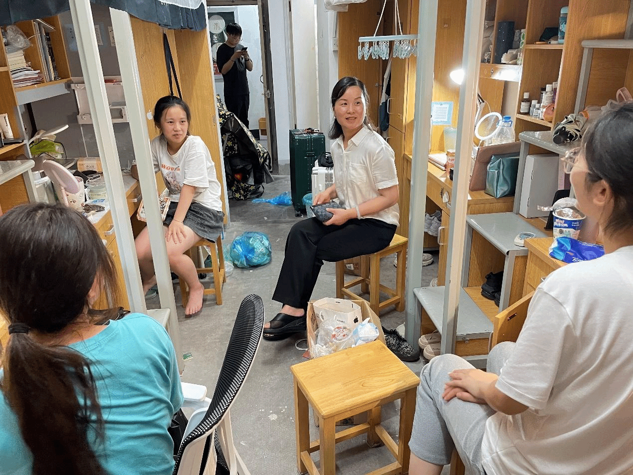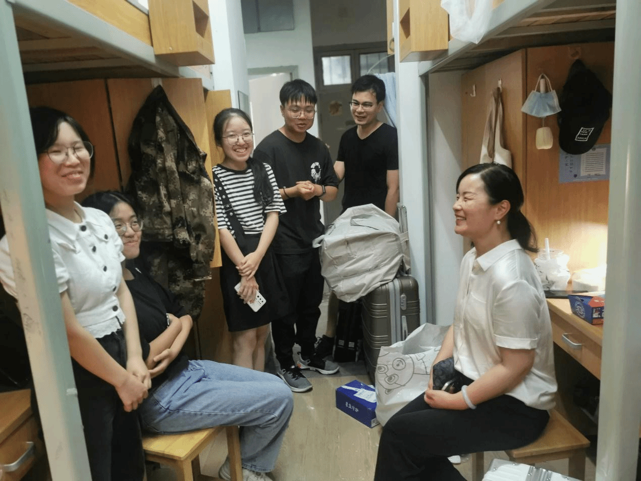为深入了解2021级学生搬迁寝室的完成情况及生活状态,加强学生寝室安全管理工作,7月12日晚上,韩雯琛副书记带领辅导员老师走访学生寝室,并与本部公寓7号楼的同学们亲切交流。