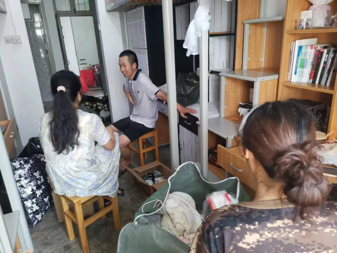 21级金融1班班主任余新平等老师走访学生寝室,并对同学们给予慰问。