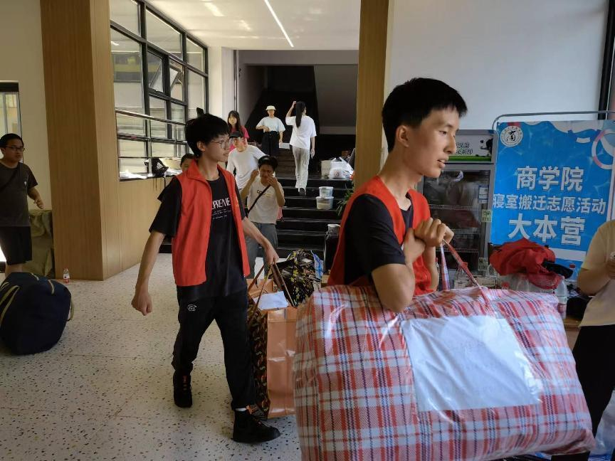 “在学院的积极组织下,我们的寝室搬迁有序进行。在准备过程中,学院为我们准备了编织袋;搬迁当天,更有各志愿者主动提供帮助,大大减轻了搬寝负担。不仅如此,学校还安排了货车为我们运送行李……学校的种种人文关怀,驱散了夏日的炎热,给我们带来了满满的美好与感动。”