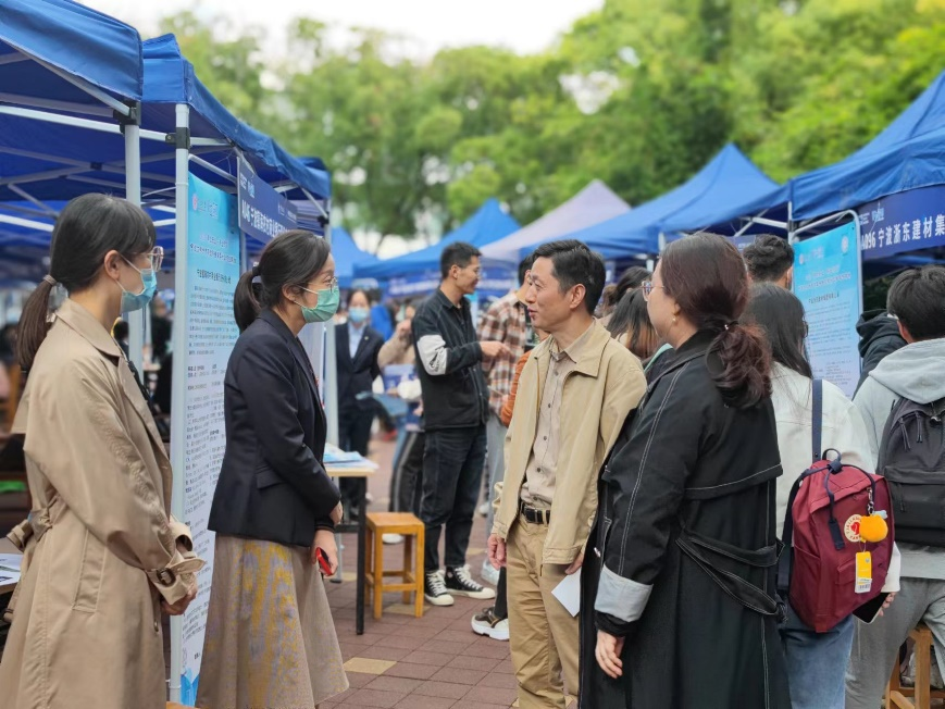 本次招聘会有宁波银行、金田铜业、赛尔、美博等100家企业参加,面向各种专业人才提供管培生、会计、人力、行政等1000余个岗位。现场招聘气氛热烈,应届毕业生们手持简历和自荐书,在人流中穿梭,积极与招聘单位交流沟通,也有不少低年级的学生来到招聘会现场与hr交流关于企业和岗位的要求,为未来就业提前做好准备。