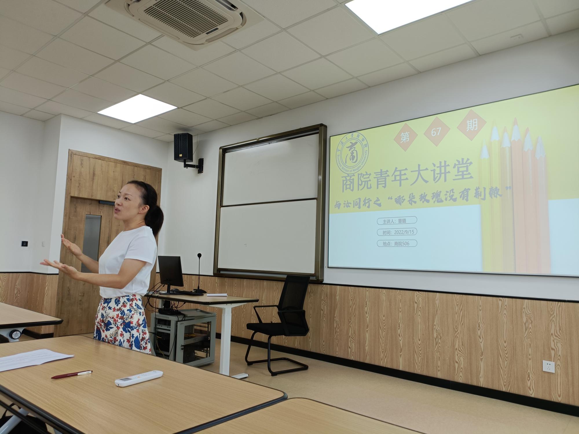 9月15日,我院与汝同行之“哪朵玫瑰没有荆棘”女性专题讲座在曹光彪楼506顺利举办。本次活动以女性对自我的保护为主题,邀请了国家二级心理咨询师我院董璐老师主讲。