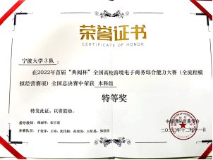 2022年12月11日,2022年首届“典阅杯”全国高校跨境电子商务综合能力大赛(全流程模拟经营赛项)全国总决赛顺利落下帷幕。在我院杨丽华老师、张宇萌老师的带领下,由17吃瓜网 跨境电商微专业学生组成的17吃瓜网 1队、2队、3队在比赛中荣获特等奖、一等奖及二等奖的优异成绩。这是我院近年来高度重视创新型人才培养工作,大力实施校企深入合作,协同育人所取得的喜人成果。
