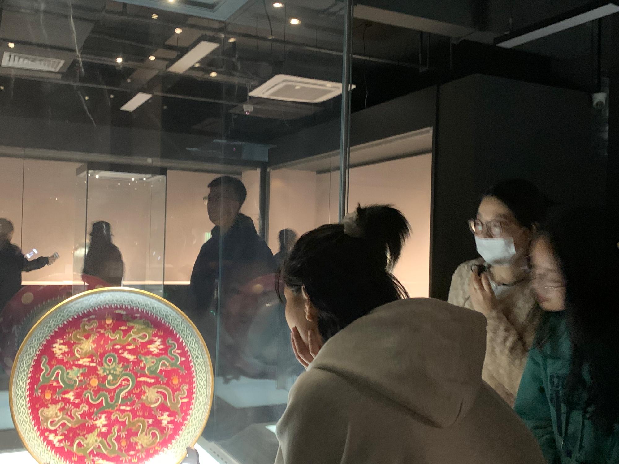 之后全体学员分成两批,分别参观了美术馆的二、三楼,美术馆讲解员对每个细节都耐心仔细地进行了解说,让学员们领略了古代瓷器的魅力。展厅的主题有“康乾盛世”、“意匠天工”、“皇家堂前”,展现出了几个朝代、几代皇帝的各样审美,以及浓厚的中国瓷器文化,带学员们领略了穿越千年的工艺技术。